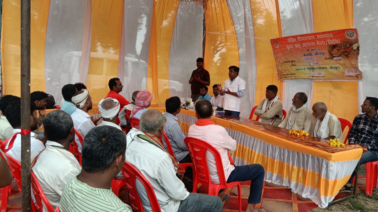 मड़ियाहूं (जौनपुर)। रामपुर विकास खंड के ग्राम कठवतिया में शुक्रवार को पशुपालन विभाग की ओर से भव्य पंडित दीनदयाल उपाध्याय पशु आरोग्य मेले का आयोजन किया गया। मेले का शुभारंभ विधिवत पूजा-अर्चना और रिबन काटकर किया गया। उद्घाटन के पश्चात मुख्य अतिथि पशुचिकित्साधिकारी डॉ. प्रशांत पटेल ने पशुपालकों को विभाग की विभिन्न योजनाओं की जानकारी दी। उन्होंने बताया कि सरकार किसानों और पशुपालकों की आय दोगुनी करने के लक्ष्य की दिशा में काम कर रही है। पशु बीमा योजना, टीकाकरण, कृत्रिम गर्भाधान और दुग्ध उत्पादन बढ़ाने के लिए कई कल्याणकारी योजनाएँ चलाई जा रही हैं, जिनका लाभ ग्रामीणों को लेना चाहिए।
