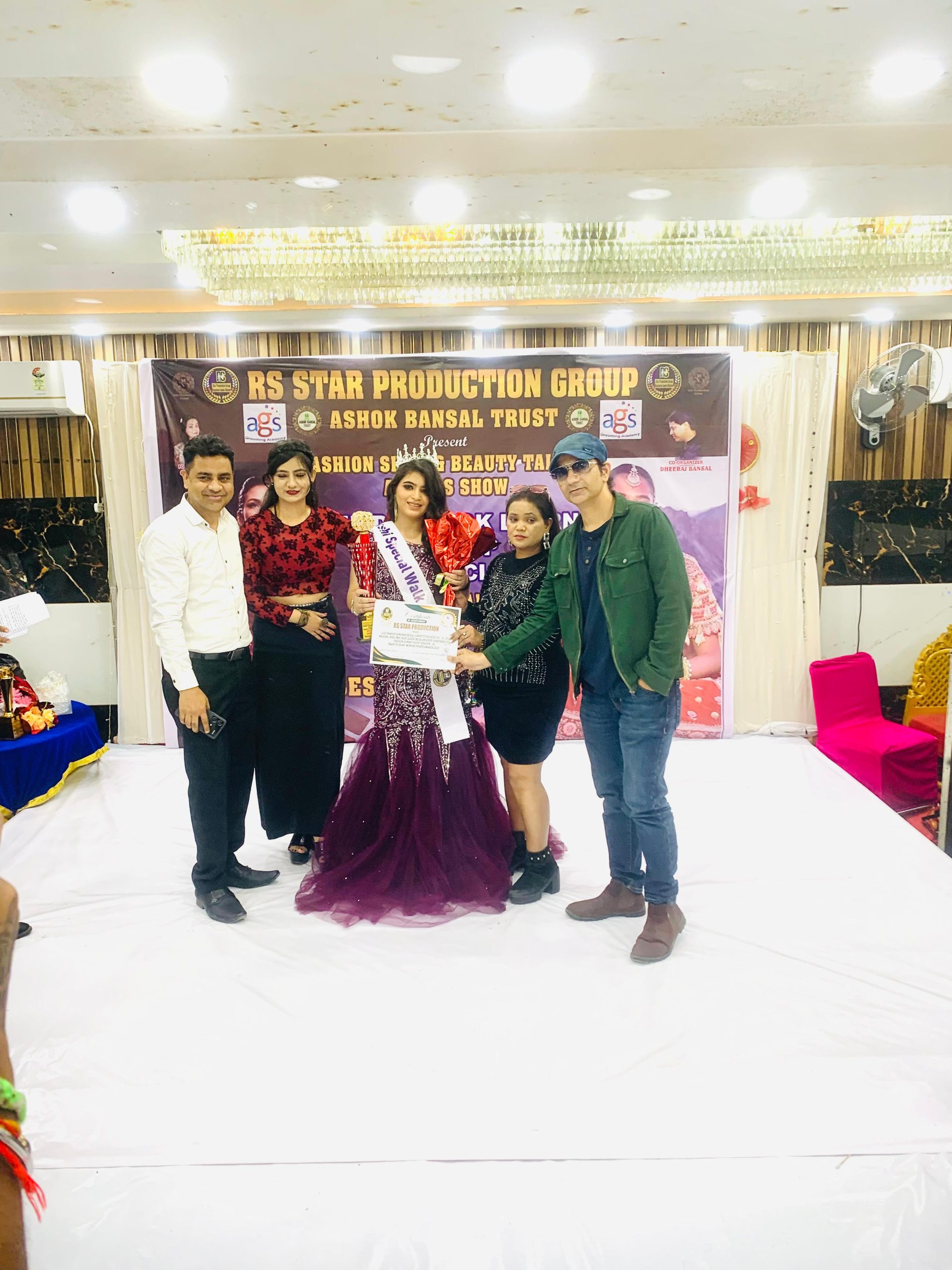 आर एस स्टार प्रॉडक्शन ग्रुप एवं बंसल ट्रस्ट द्वारा एक फैशन शो और किड्स डांसिंग बच्चों का कार्यक्रम स्थान ,अन्नपूर्णा बैंक्विट हॉल नवयुग मार्केट गाजियाबाद में हुआ, यह कार्यक्रम आर एस स्टार प्रोडक्शन ग्रुप की डायरेक्टर ऑर्गेनाइजर गीता शर्मा के द्वारा कराया गया, इस कार्यक्रम में सेलिब्रिटी आर्टिस्ट के रूप में मुंबई से सीमा कनौजिया शामिल हुई,कार्यक्रम में कहीं मेकअप आर्टिस्ट भी शामिल हुई, जिसमें मुंबई से सेलिब्रिटी के रूप में सीमा कनौजिया का मेकअप नरगिस मलिक ने किया,जिनका अपना मेकअप स्टूडियो आयात अल फिजा के नाम से लोनी गाजियाबाद में स्थापित है, इस अवसर पर कार्यक्रम की ऑर्गेनाइजेशन गीता शर्मा ने बताया कि मे फैशन शो और मॉडलिंग शो पिछले काफी वर्षों से लगातार उत्तरांचल, उत्तराखंड, देहरादून, नोएडा, दिल्ली, गाजियाबाद, मेरठ, और भी कई शहरों में बड़े-बड़े इवेंट कर चुकी हूं,साथ ही ये बताया कि हमारे प्रॉडक्शन से काफी आर्टिस्ट को आगे बढ़ाने में अपने मंच के माध्यम से एक नया प्लेटफार्म भी दिया है, जिसमें काफी आर्टिस्ट मॉडलिंग और फैशन शो के क्षेत्र में आज अपना नाम कमा रहे हैं।